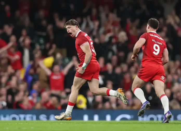Patru minute mai târziu, Dan Edwards reușește un drop-goal magistral de la 40 de metri și pare incredibil, dar galezii conduc cu 31 la 0.